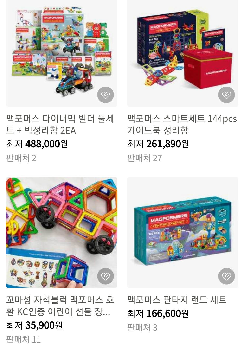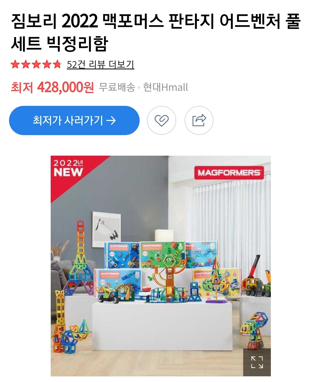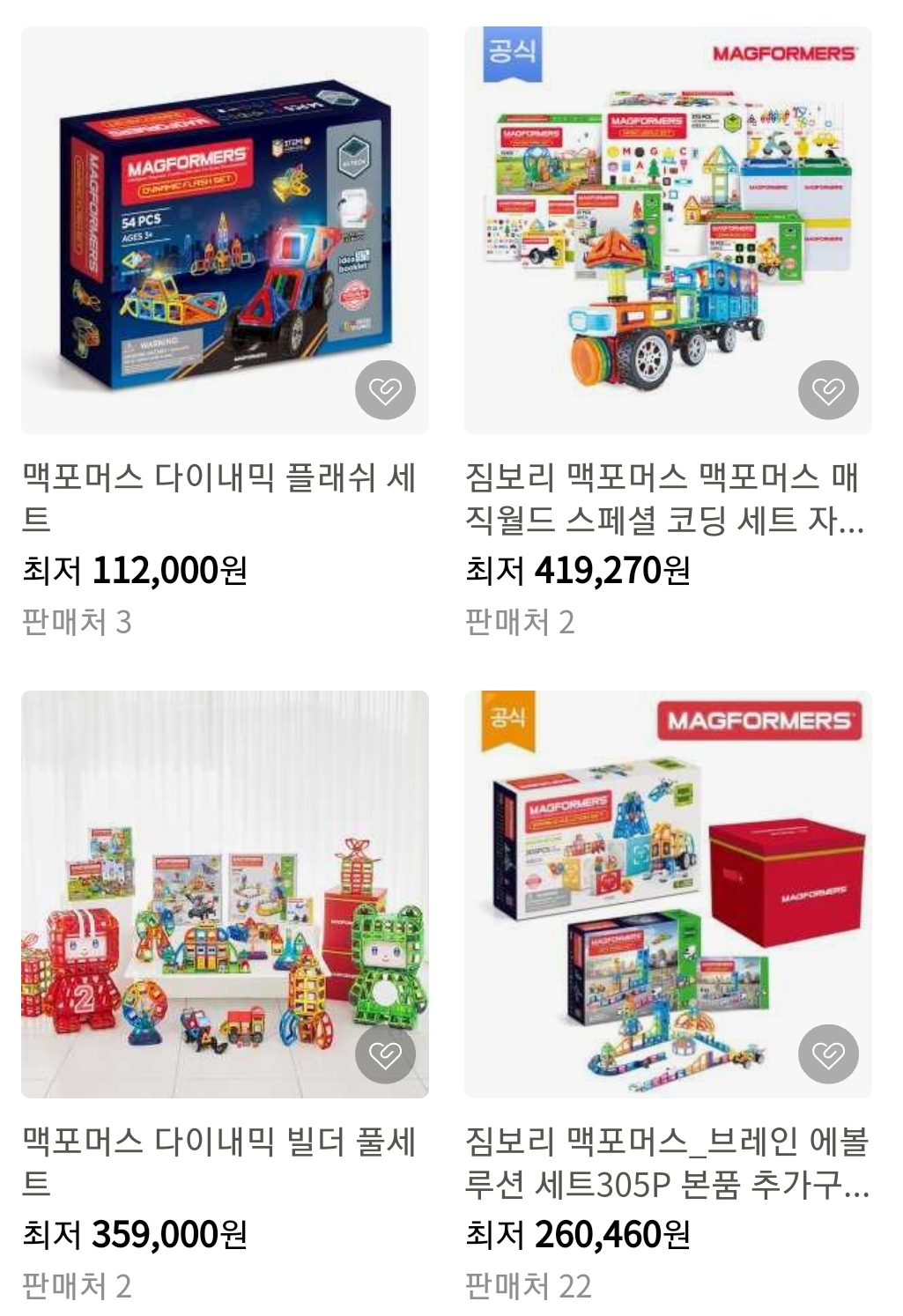 아래와 같이 2022년 맥포머스 풀세트 같은 경우 최저 428,000원인것을 확인 하실수 있습니다.