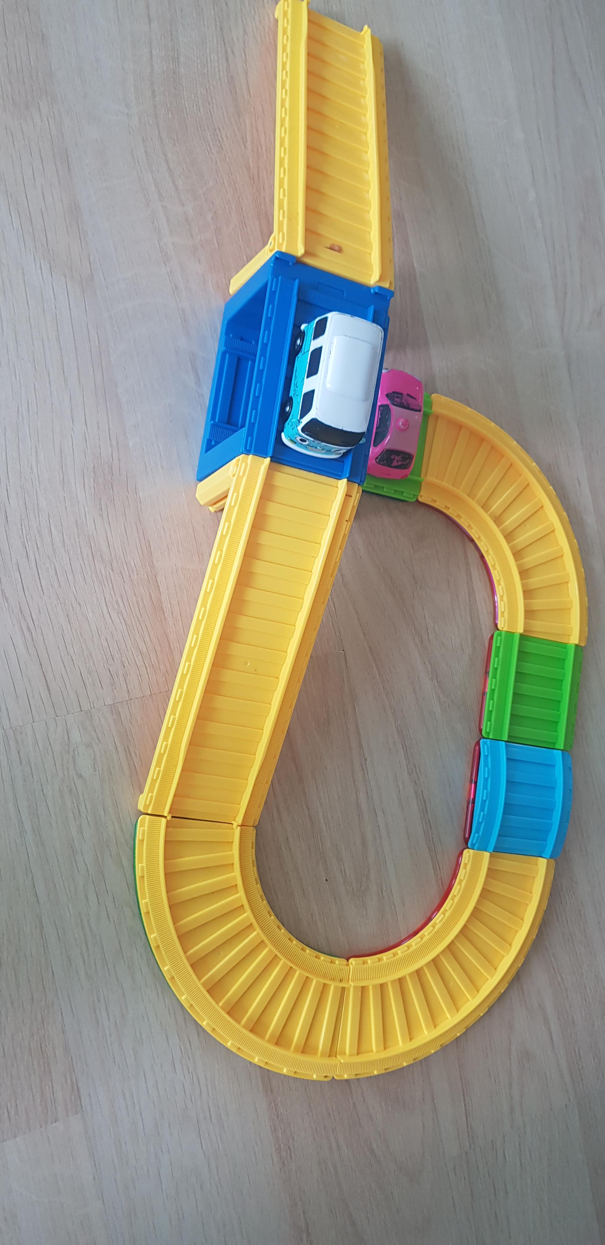 계속 기차길을 변경해서 자동차 놀이를 하고 있습니다.