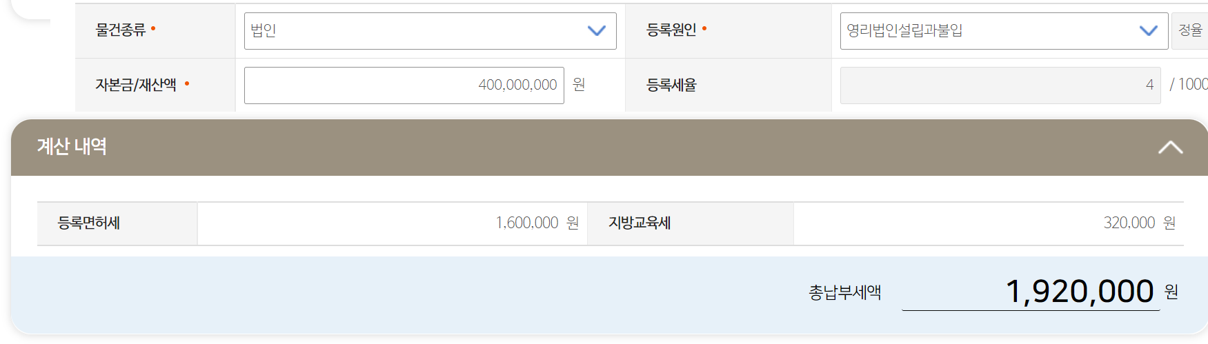 1) 부동산 등록분 세금 계산