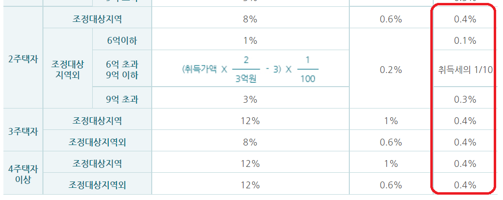 2주택만하더라고 취득세및 지방교육세가 많이 올라가네요.