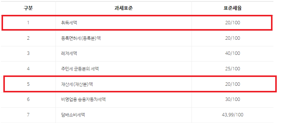 여기서 우리가 주목할 부분은 취득세와 재산세 입니다.