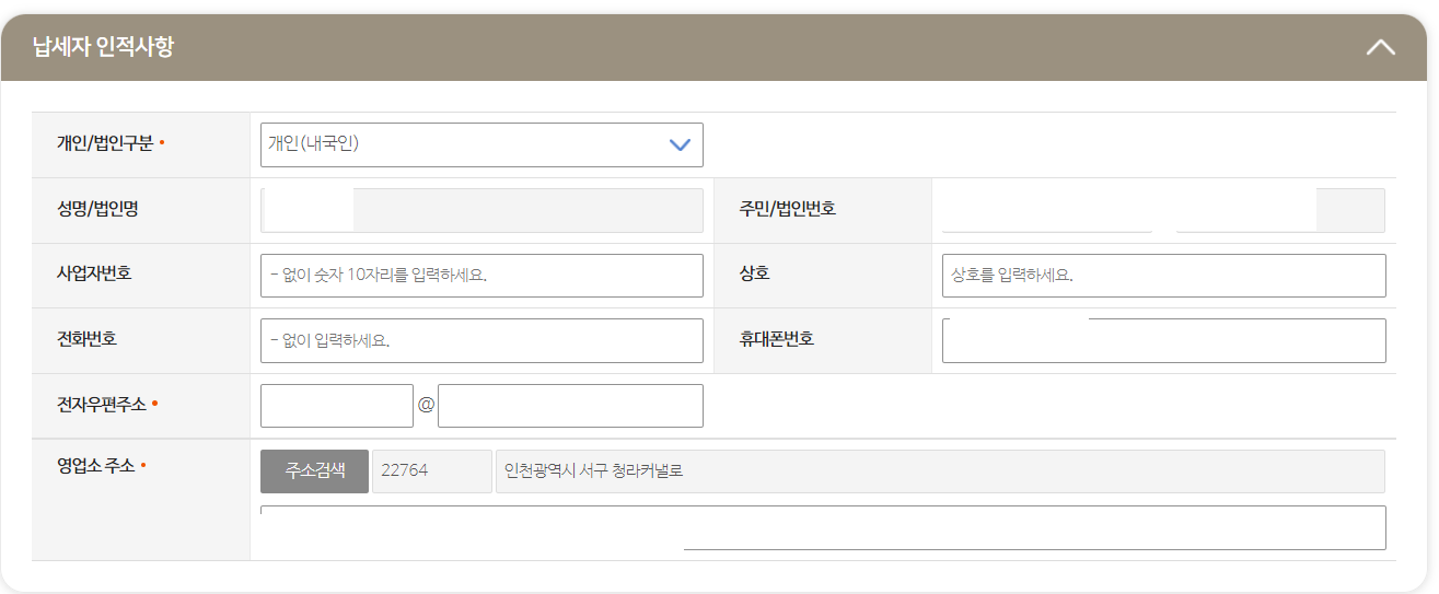 2) 그러면 납세자의 인적사항이 아래와 같이 나오게 됩니다.