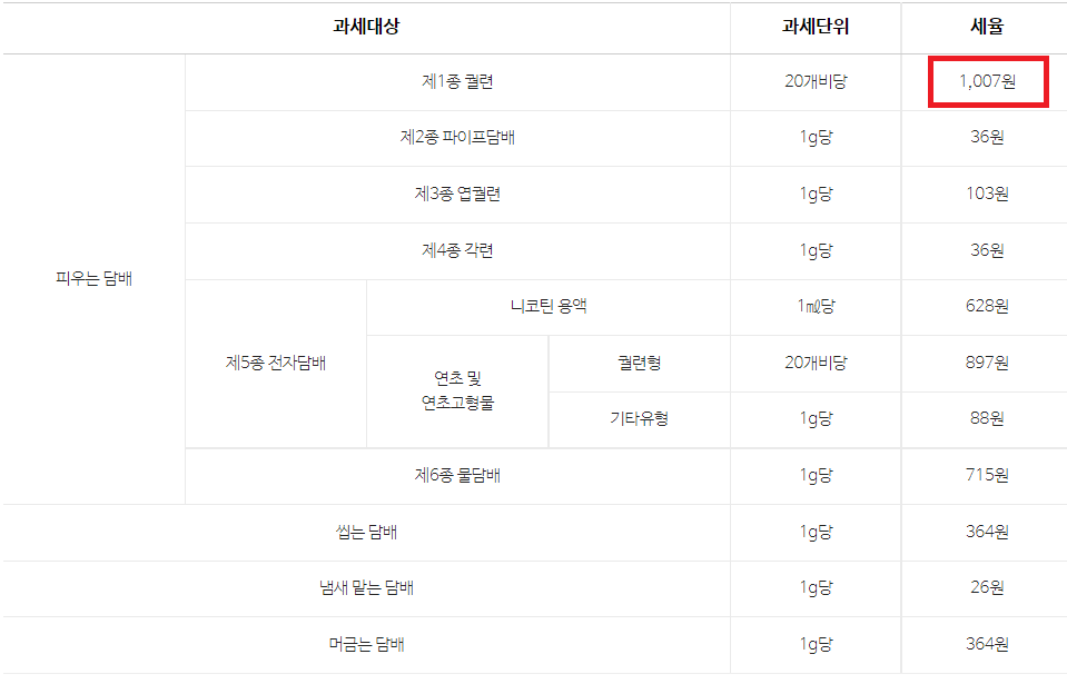 참고로 담배는 건강에 해롭기 때문에 세금때문이라도 피지 않으시는게 좋습니다. :)