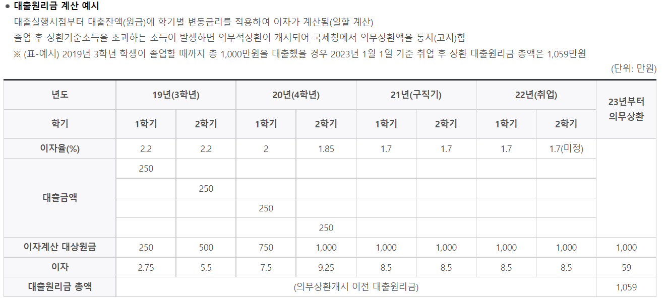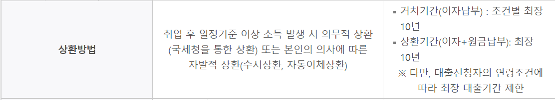 위와 같이 취업을하고 일정기준이상 소득이 발생하면 상환을 수행하게 됩니다.