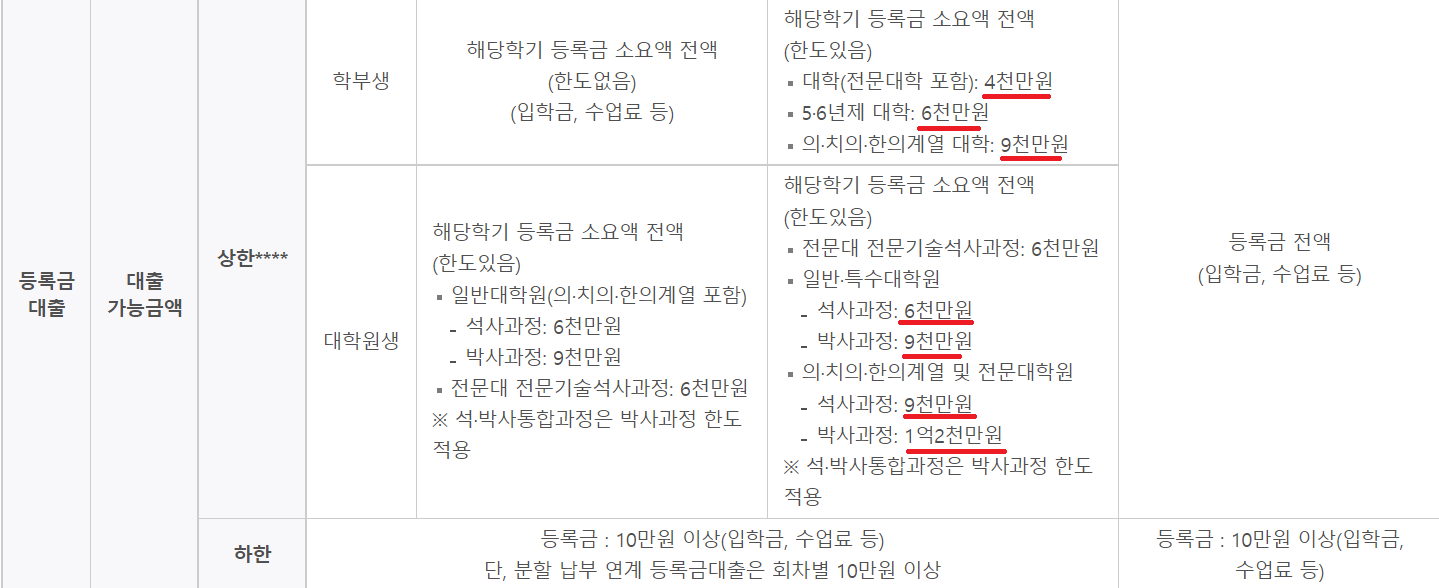 등록금의 경우, 4년재 대학의 경우 최대 4천만원입니다.