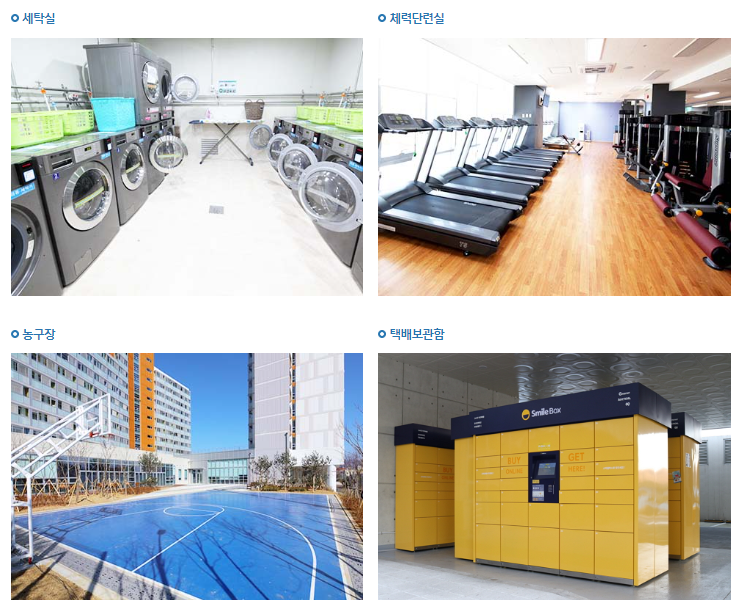 아래는 세택실, 체력단련실, 농구장, 택배실입니다.