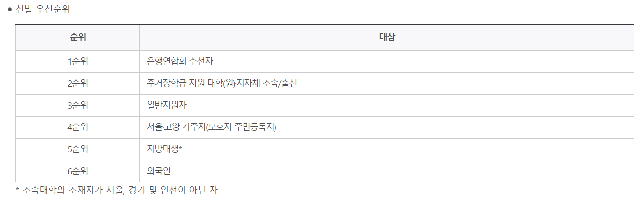 2순위는 주거장학금 지원 대학 소속원입니다.