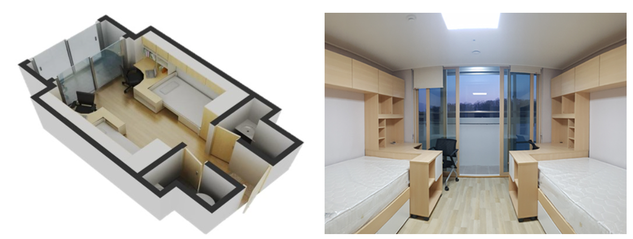 2인 1실인데, 생각보다 기숙사가 깔끔하고 잘 되어 있습니다.
