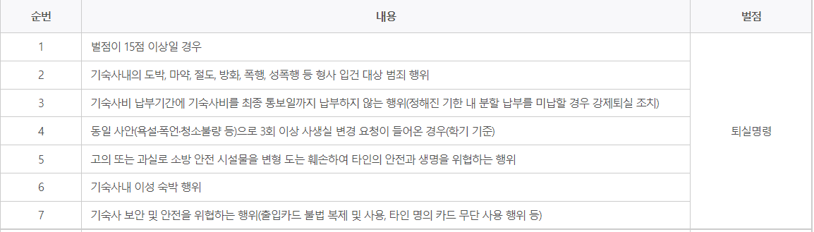 그리고 강제퇴실이 되실수도 있는데 아래 내용을 참고해 주시기 바랍니다.