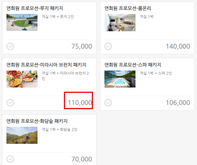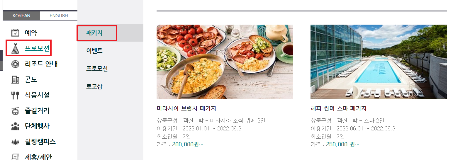 여기서 프로모션의 패키지를 선택해 주세요.