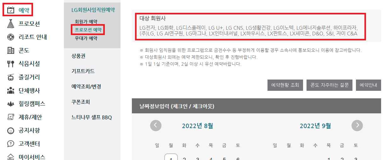2. 그러면 아래와 같이 예약, 프로모션이 나오게 됩니다.