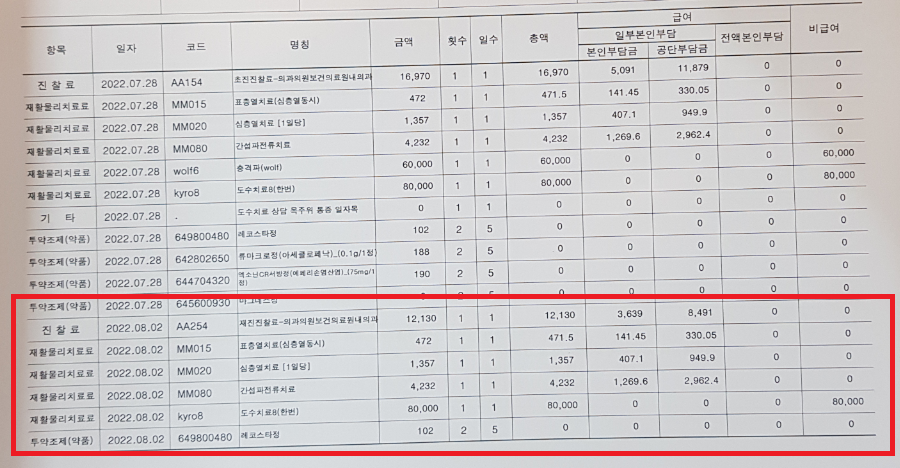 정말 열심히 비용을 청구하여 비급여 금액을 잘 타고 있습니다.