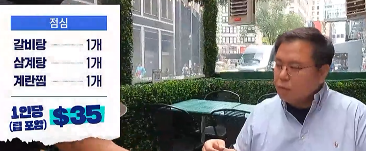 2) 점심식사 1인당 : 35달러 + 7달러 = 42달러