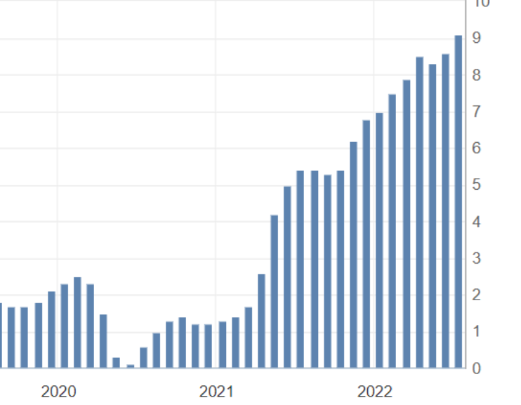 그런데 2022년 7월 기준 9.1%라는 아주 높은 지표가 아래에 보이고 있습니다.