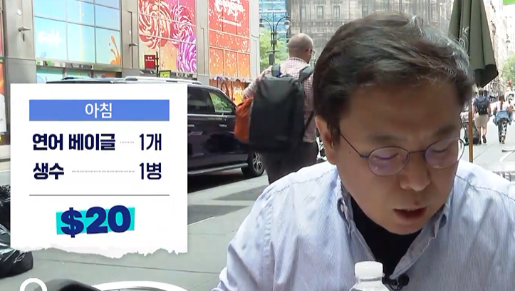 1) 연어 베이글 + 생수 = 20달러