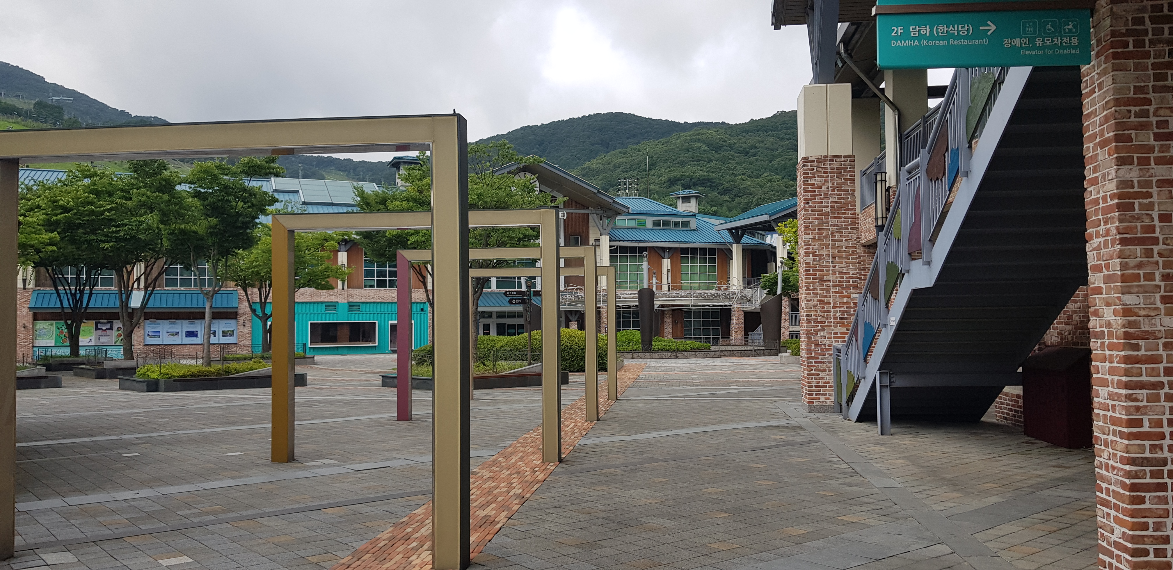 하늘공원에 가기 위해서는 스키하우스에 들어가야 합니다.