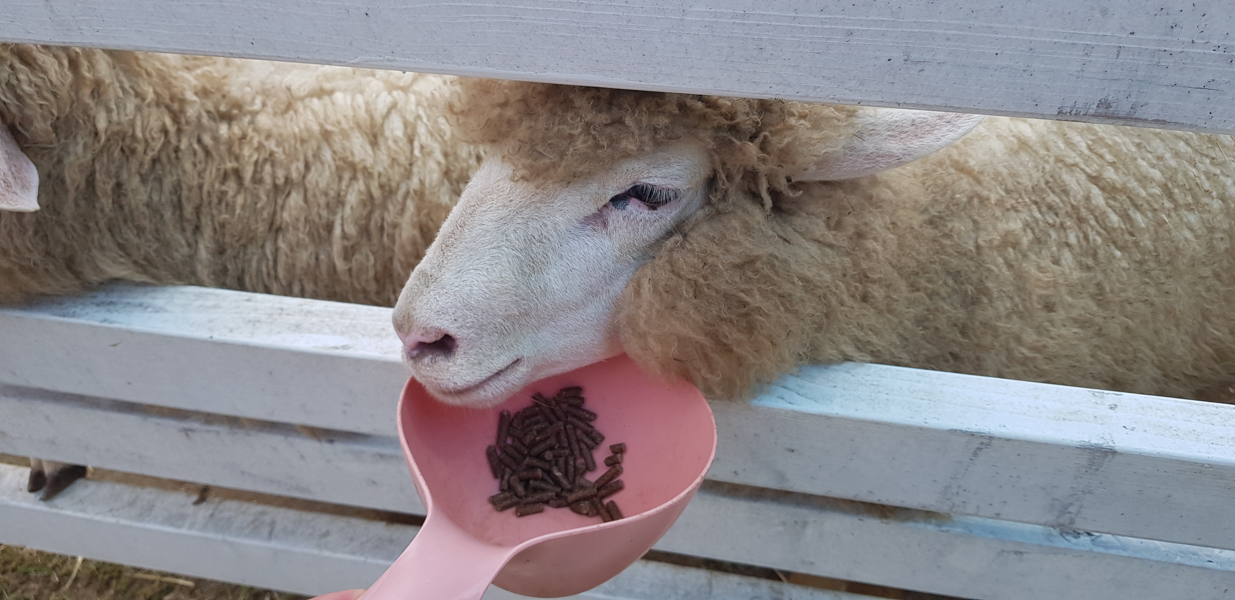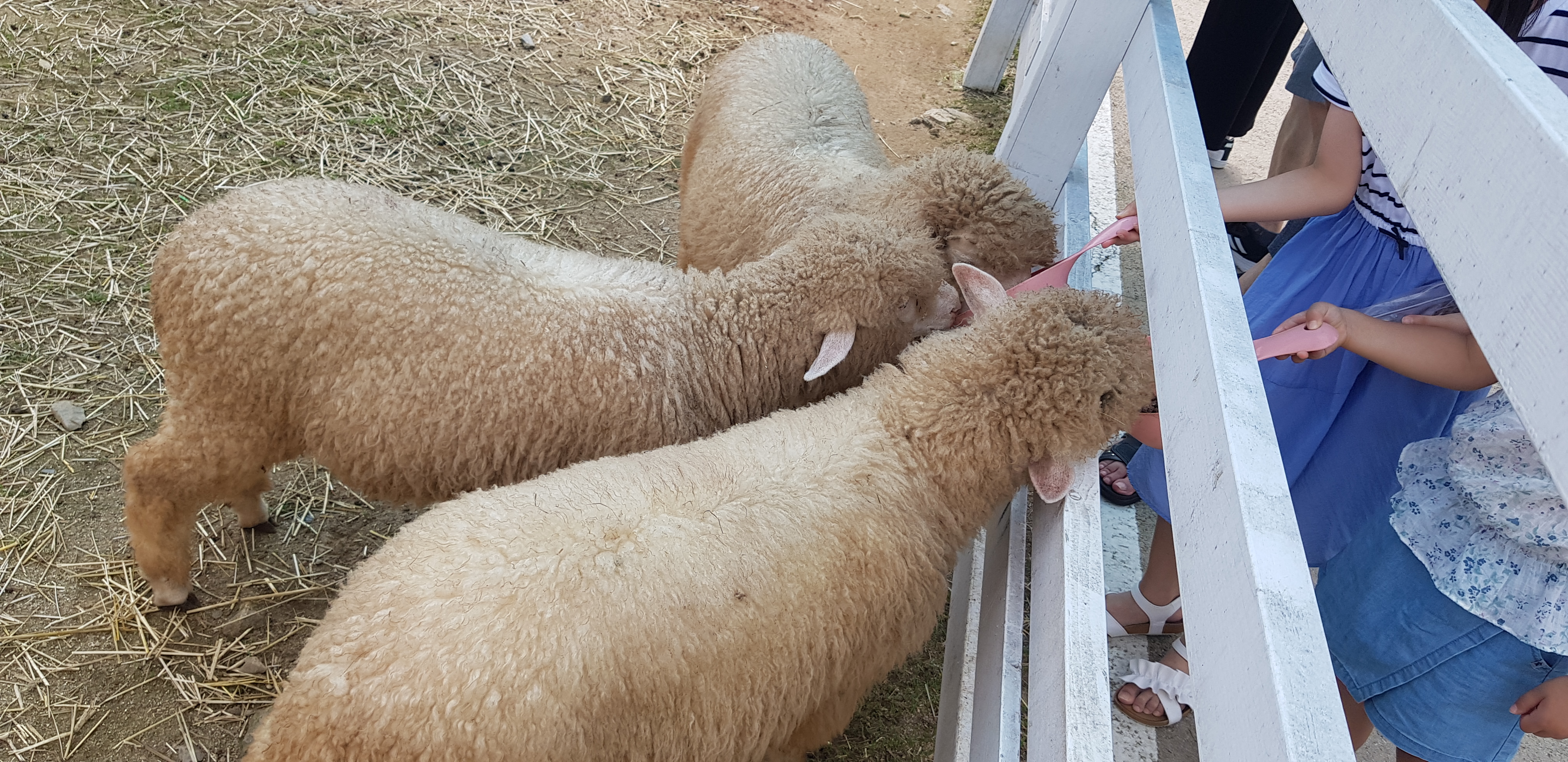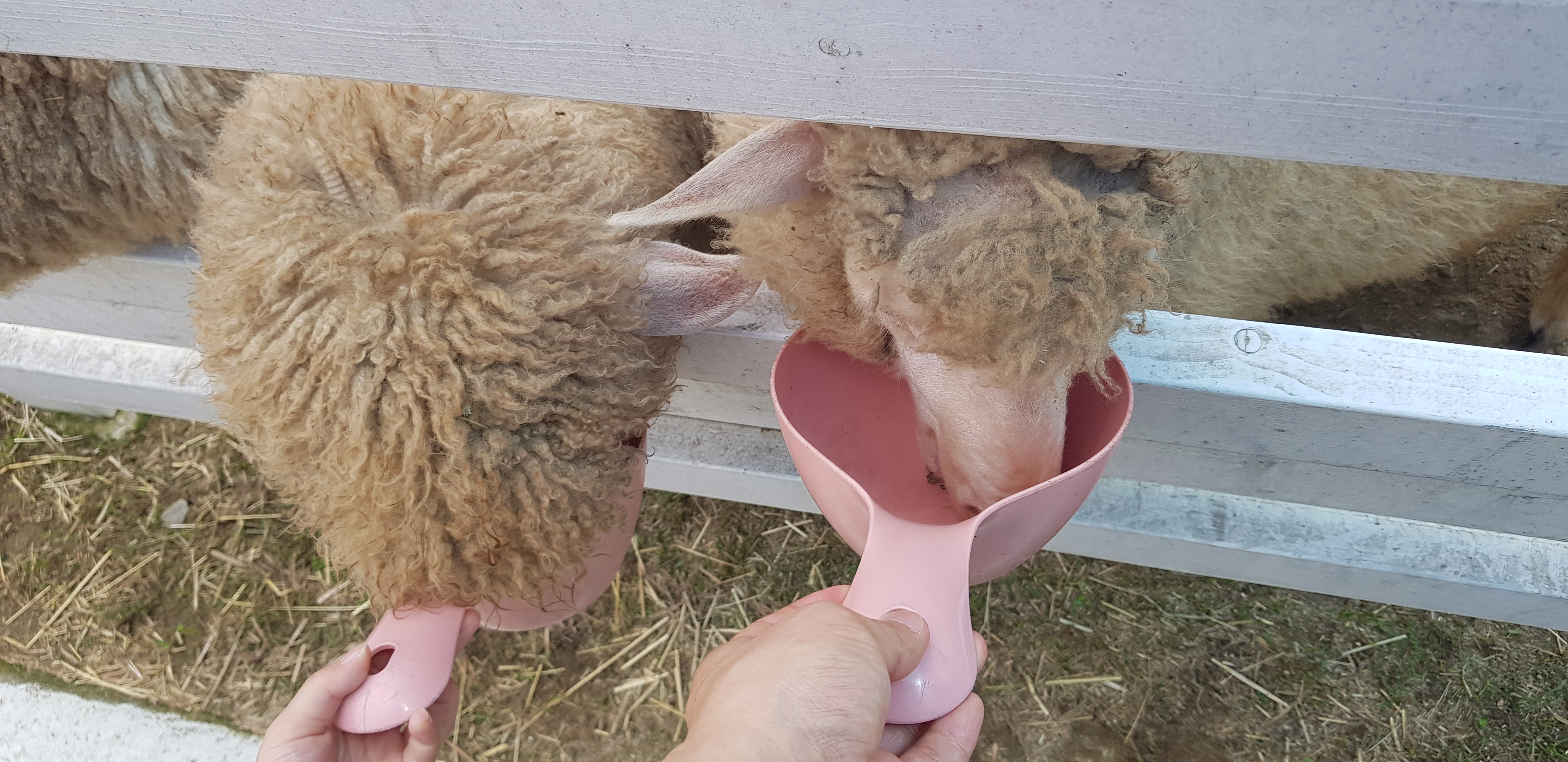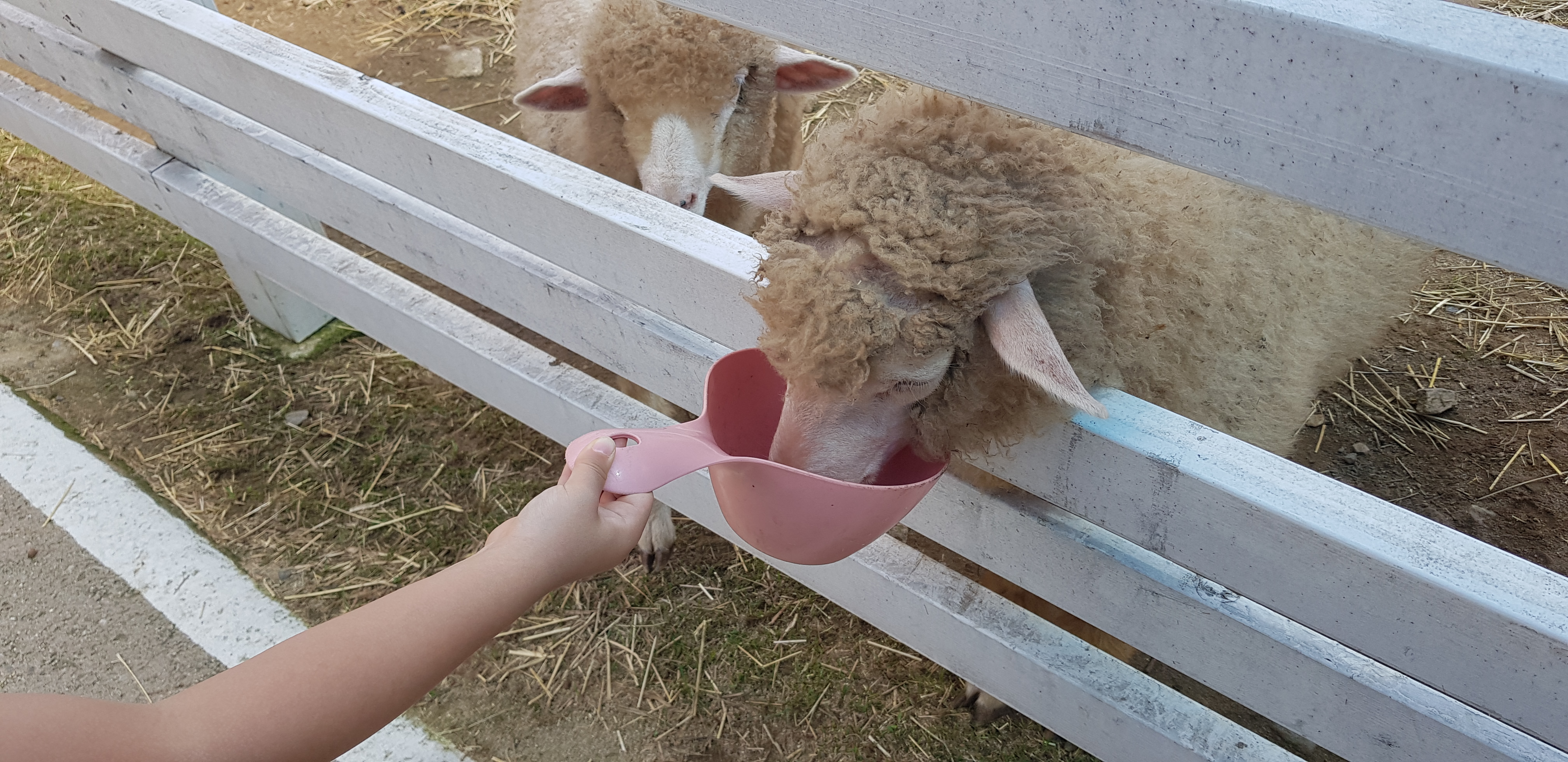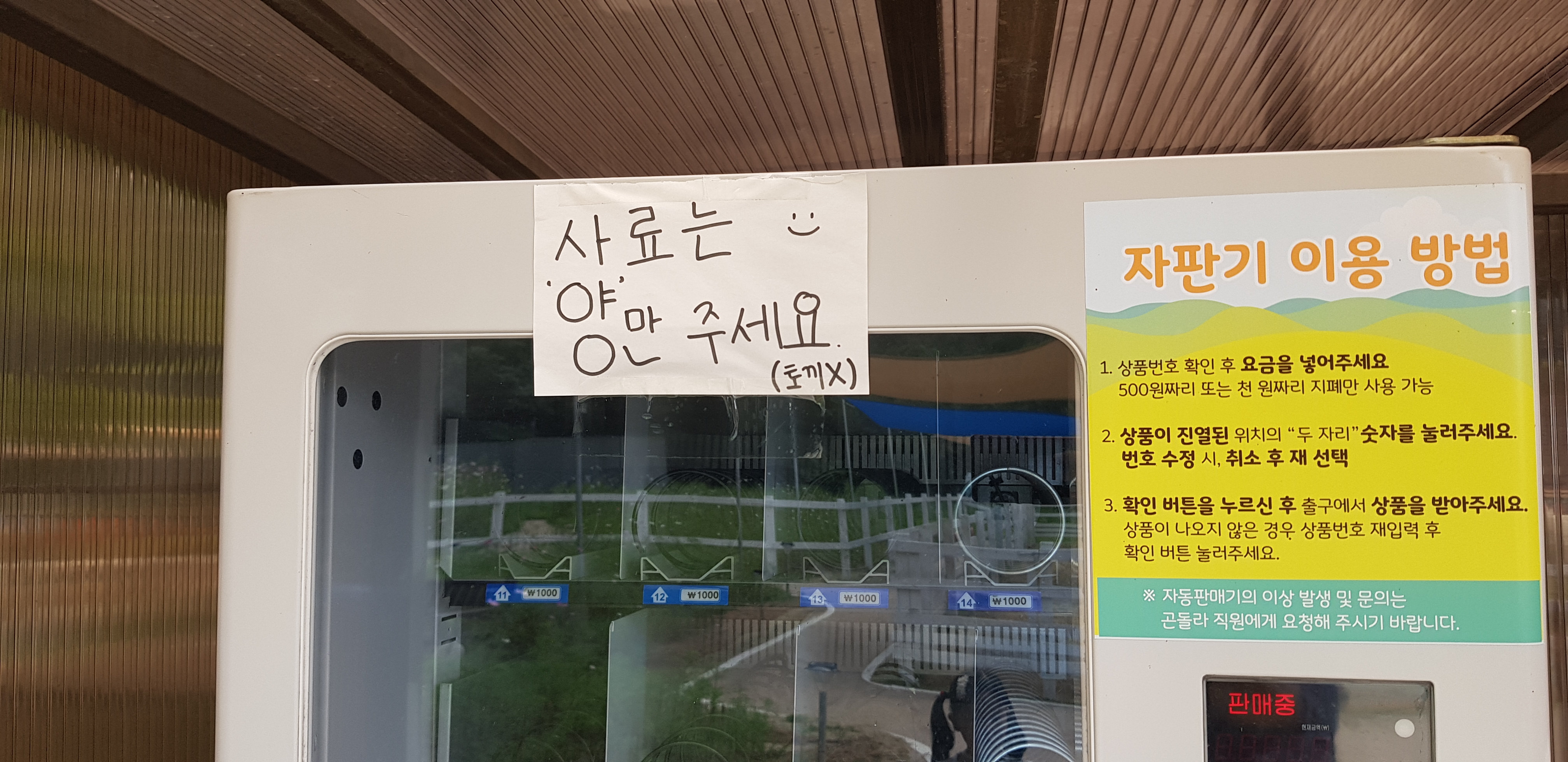 양에게 사료를 먹이기 위해 자판기로 갔습니다.