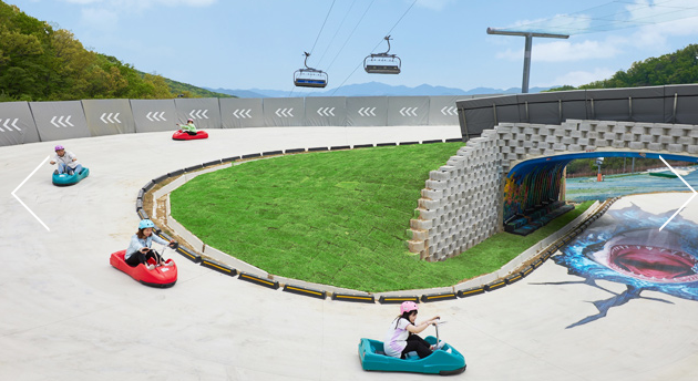 루지는 아래와 같이 자동차를 타고 내려오는 엑티비티입니다.