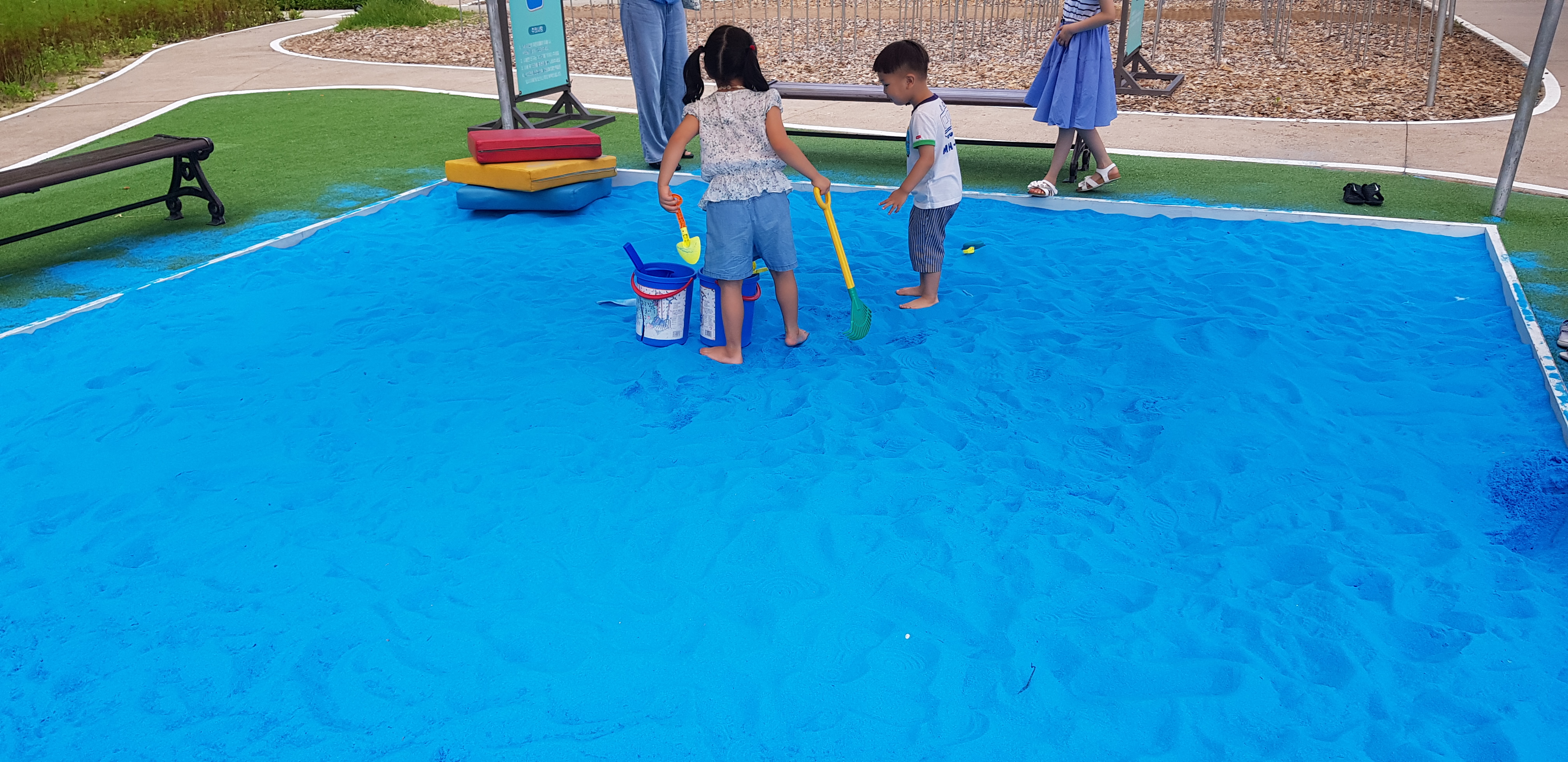 우리 아이들이 가장 좋아한 파랑색 모래놀이터 입니다.