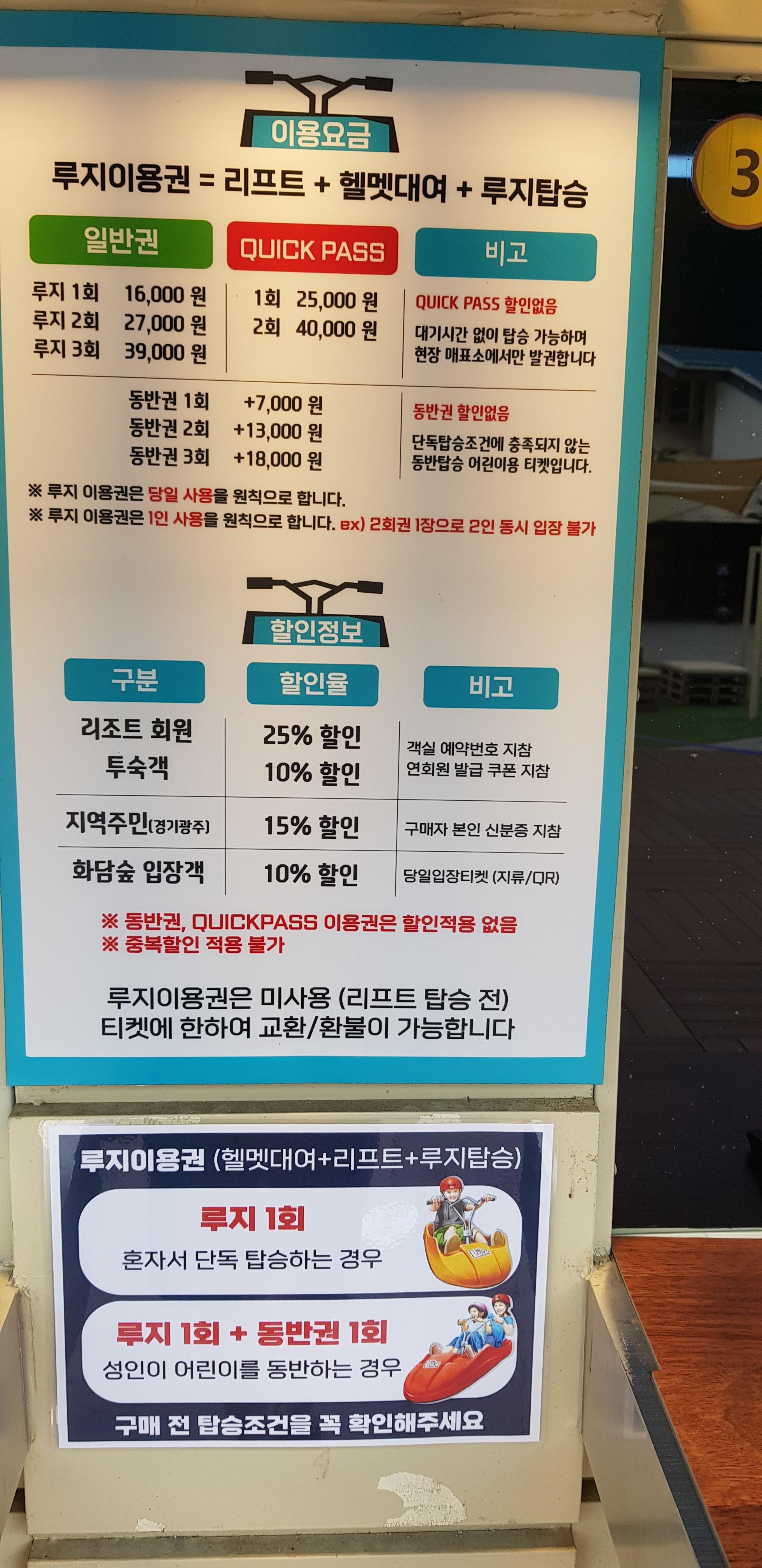 그리고, 곤돌라 비용 및 루지 비용에 대해서도 추가 정리해 보도록 하겠습니다.