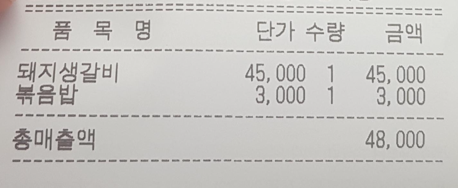 아내와 함께 먹은 식사 가격입니다.