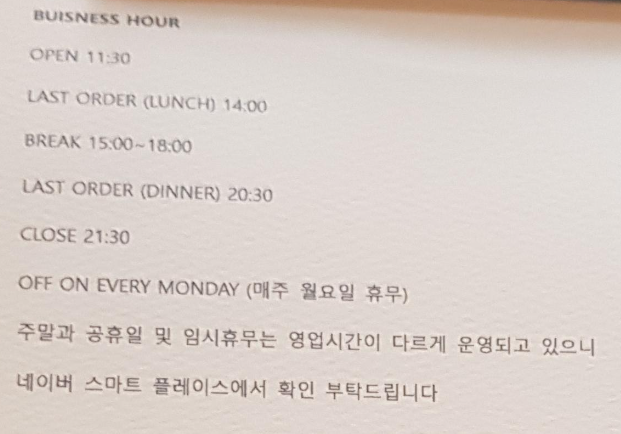저녁의 마지막 주무은 오후 8시30분까지 입니다.