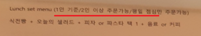 저는 아래와 같이 런치메뉴를 시켰습니다.