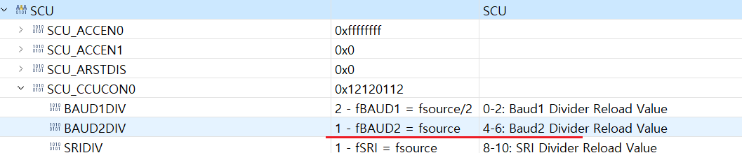 인피니언 MCU는 아래와 같이 dataWidth라는 부분을 변경하여