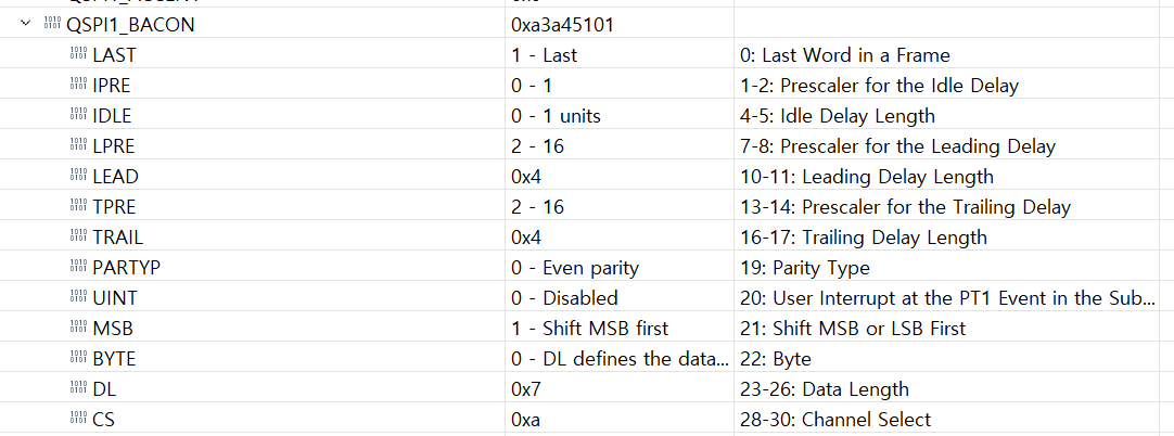 이렇게 설정하면 결국 레지스터느는 아래와 같은 값이
