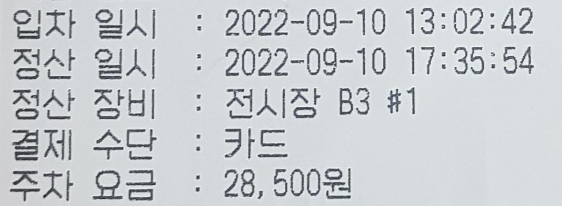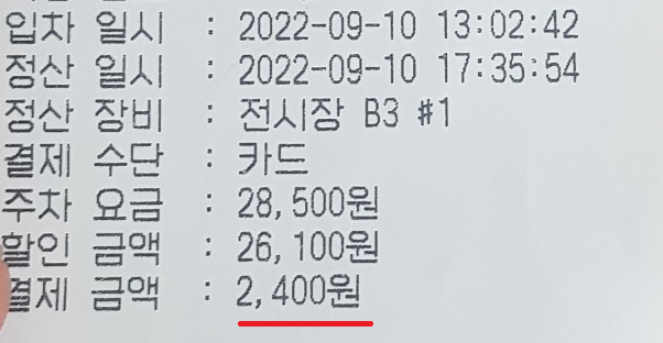 예를 들어 아래와 같이 저는 4시간 30분정도를 주차를 하였습니다.