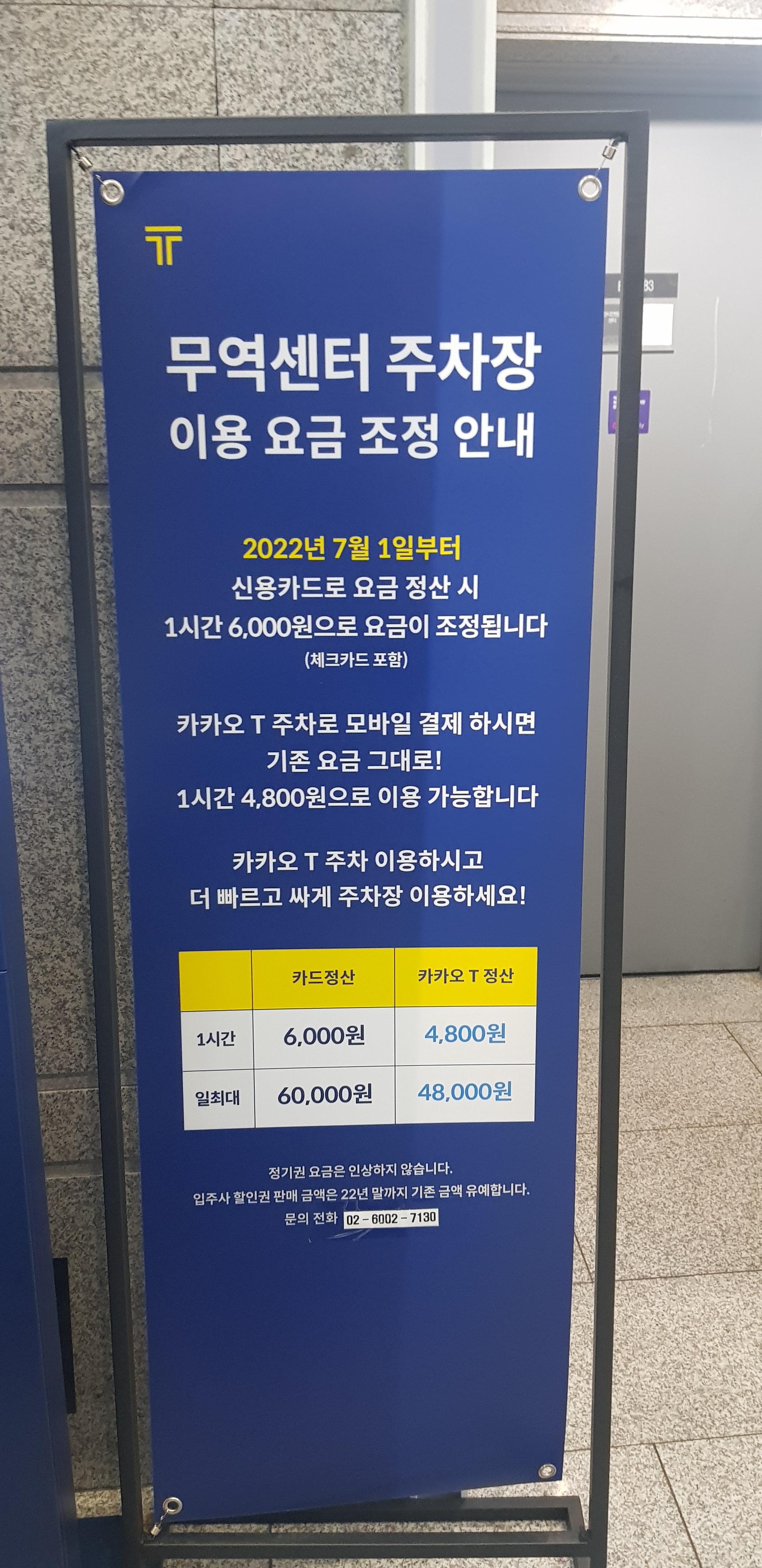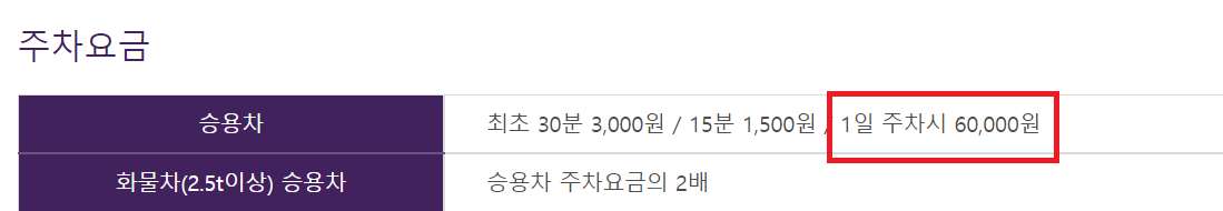 무역센터에 주차를 하시면 요금이 아래와 같습니다.