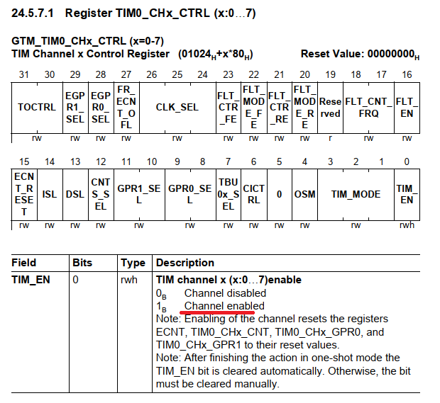 GTM_TIM0_CH0_CTRL.B.TIM_EN = 1;