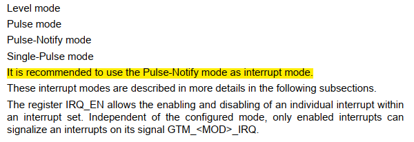 12. GTM_IRQ_MODE.B.IRQ_MODE = 2;