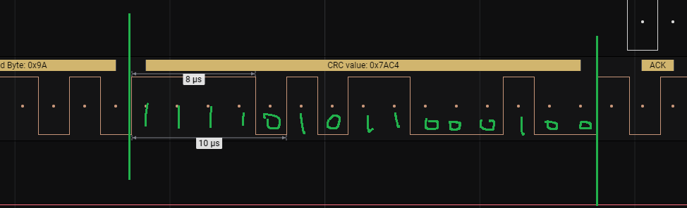 즉, 메시지를 수신한 모든 CAN 컨트롤러는 메시지의 마지막에 위치한 ACK비트를 0으로 전압을 내려줍니다.