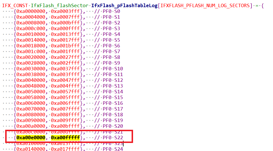 uint32 sector_addr = IfxFlash_pFlashTableLog[g_Pflash.sector].start;