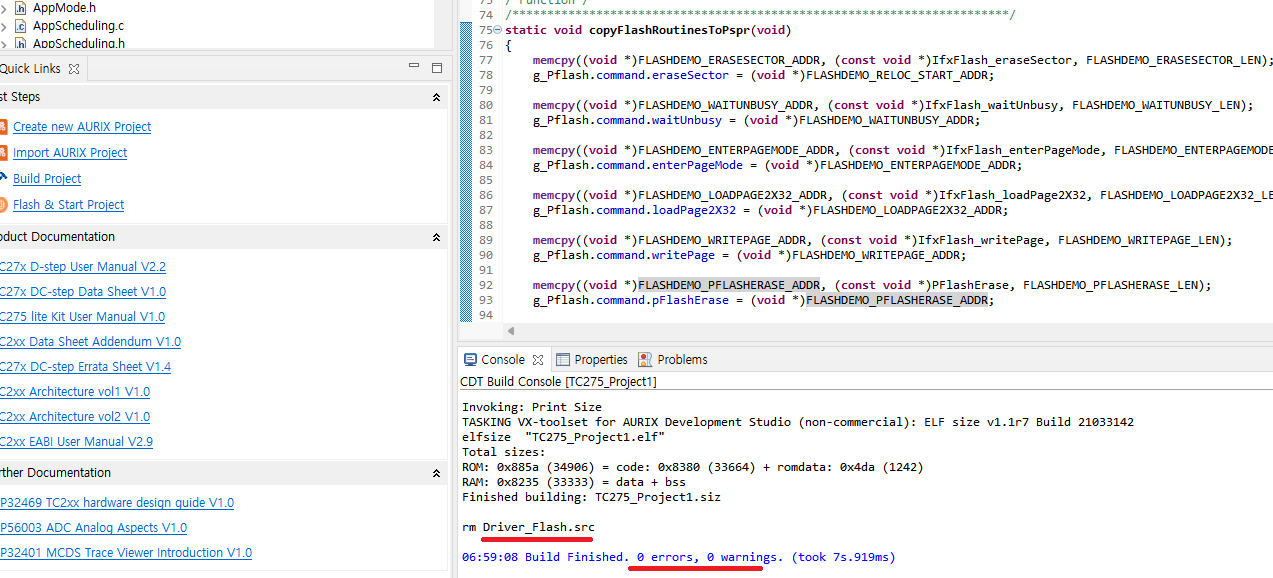 먼저 인피니언에서 제공해주는 TC2x Flash Demo 코드를 포팅하여 동작시켜 볼게요!