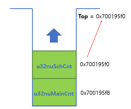 지금 Stack Pointer는 0x700195F8을 가르키고 있습니다.