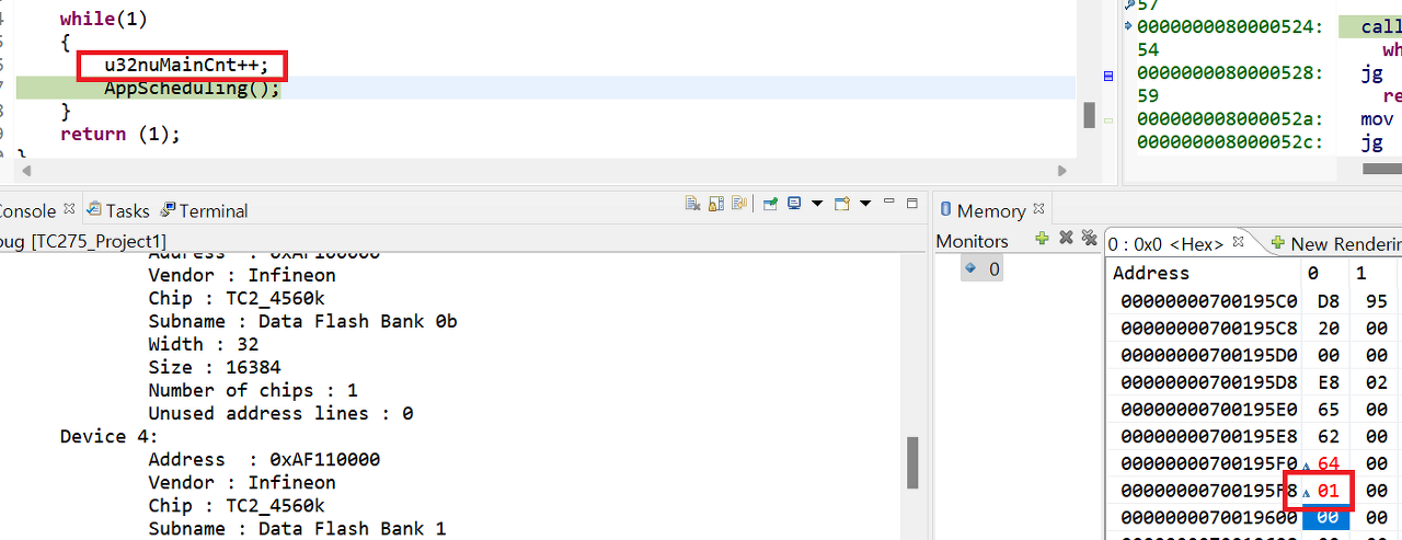 그리고 u32nuMainCnt를 1 증가시켜 보겠습니다.