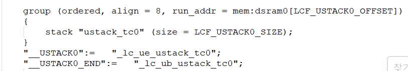 _lc_ue_ustack_tc0 과 _lc_ub_ustack_tc0 의 주소값이 보이고