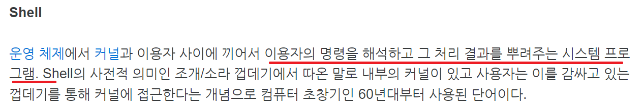 Shell을 위키에서 검색해 보면 아래와 같습니다.