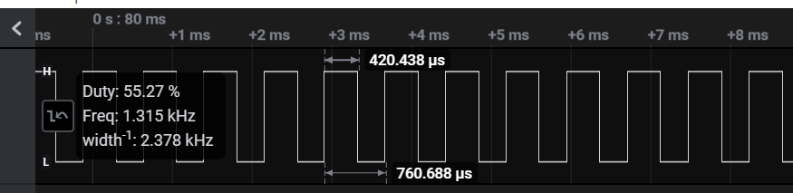 DC Motor에 Duty 50%를 주어 PWM을 만들어 보도록 하자!
