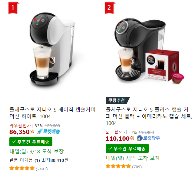 아래 쿠팡에서 돌체구스토 커피를 찾아보면