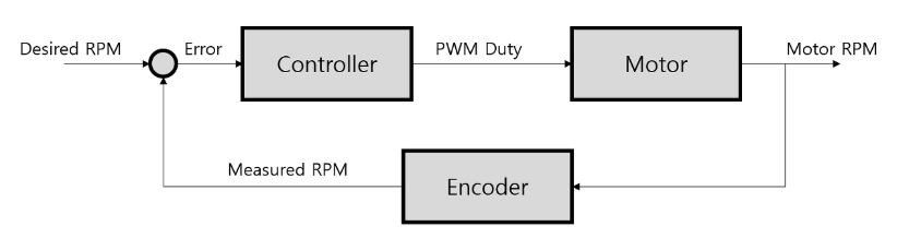 Feedback 제어를 수행하기 위해서는 모터의 속도를 측정하기 위한 encoder도 필요합니다.