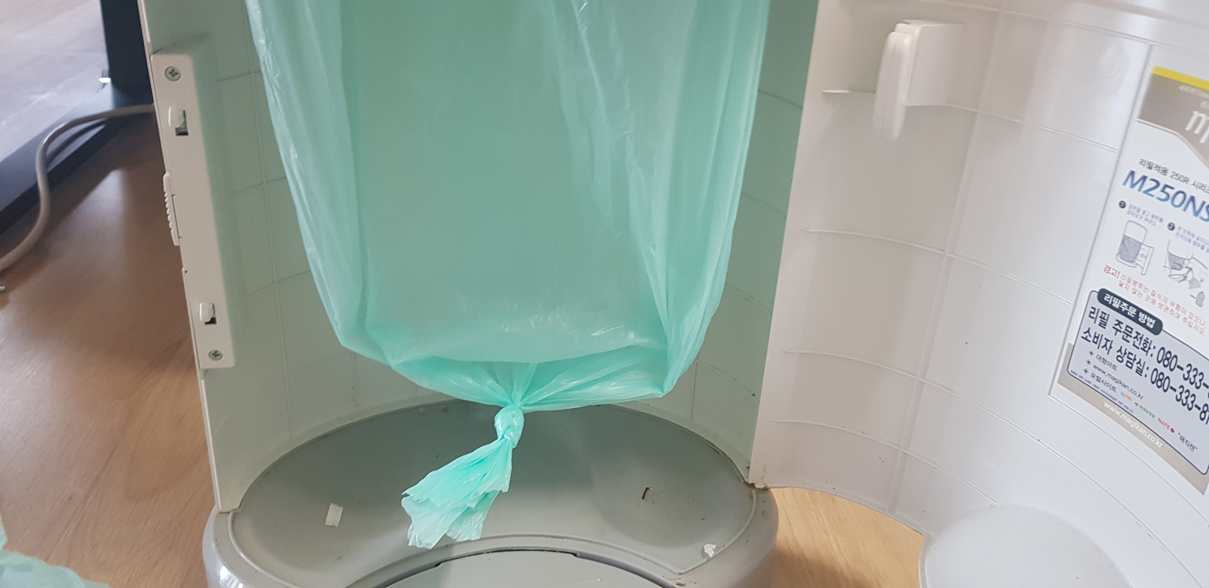매직캔을 산 이유는 아래와 같이 그대로 쓰레기 봉지를 사용하니, 냄새가 많이 났고