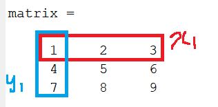 그러면 y1은 1열의 모든행을 가지게 될것입니다.