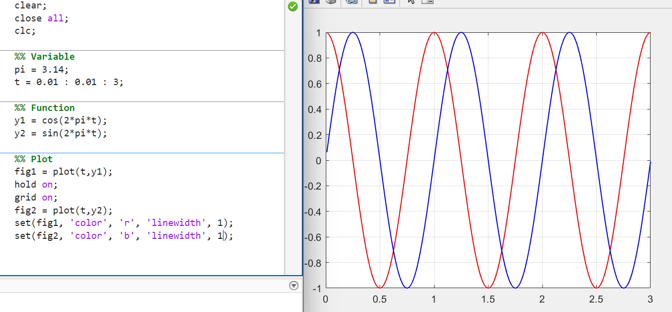 그리고 그림을 그리는 과정에서 hold on은 그림을 그대로 겹쳐서 그리겠다는 것을 의미합니다.