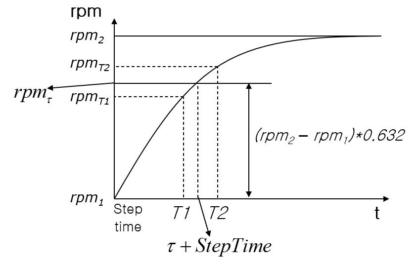 Tau는 응답되는 RPM의 값이 63.2%가 되는 지점입니다.