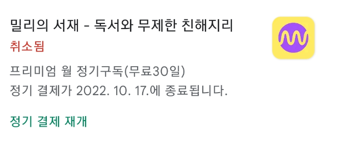 밀리의 서재는 해지신청이 복잡하지 않습니다.