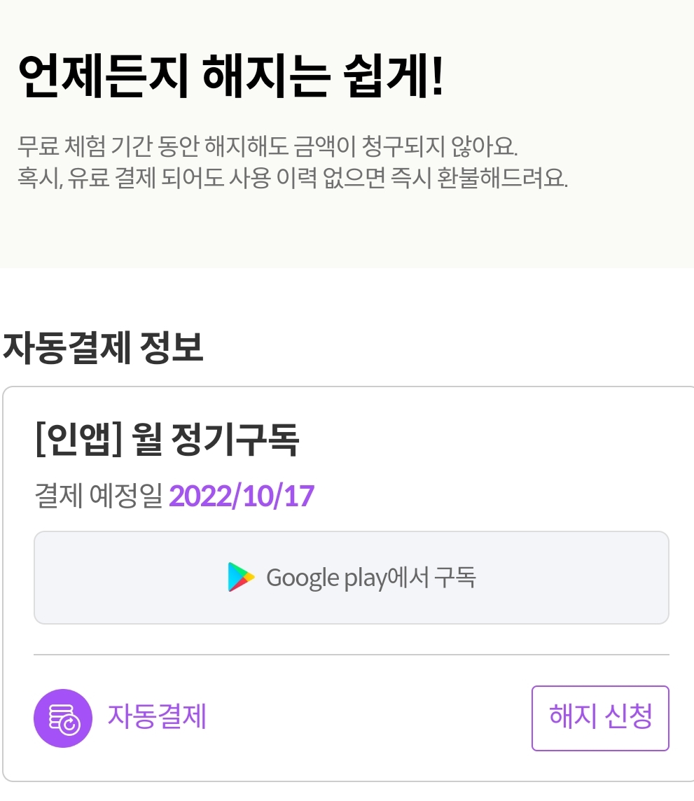 자동결제 해지가 아래와 같이 복잡하게 되어 있지만