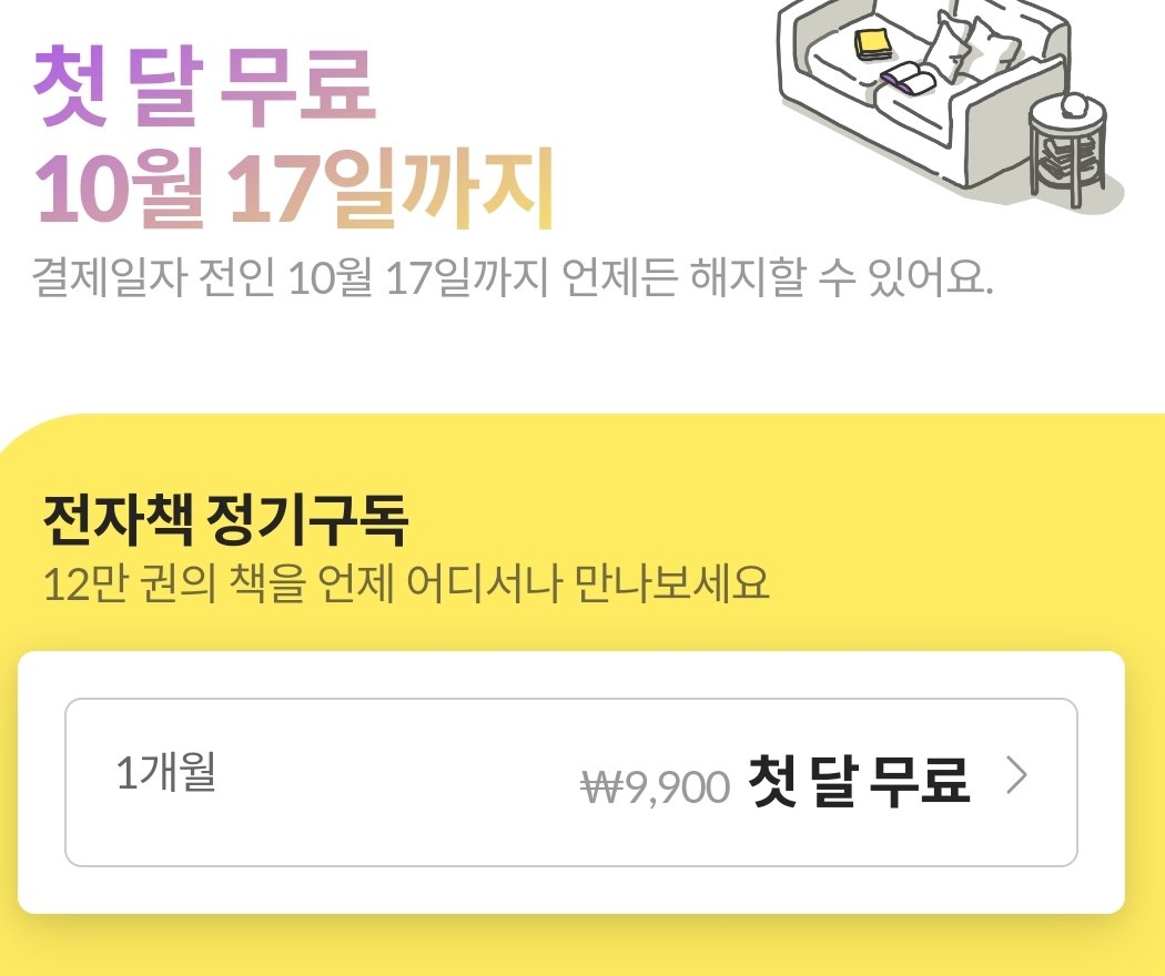 전자책 정기구독은 위에서 말씀드린것 처럼 9,900원입니다.